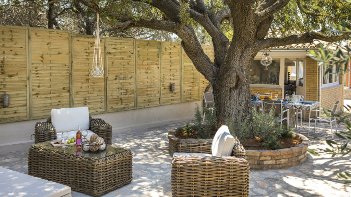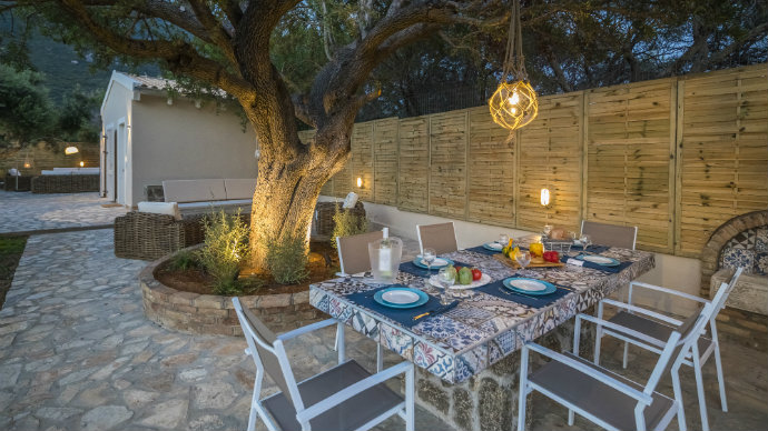 In a land area of 2,000m² , a 134 m² Villa and a 20 m² bungalow, built with eco - friendly materials and standards, spread over an area of 2 acres, offering a living environment characterised by elegance and comfort. Fully furnished and equipped can accommodate up to 4 people, plus 2 additional guests in a stylish bungalow. The pool is surrounded by the best outdoor furniture come together to form the perfect summer holiday setting, outdoor fireplace come to give its own touch to what can only be described as a work of art. The garden is filled with aromatic plants and herbs which tantalize your sense of smell giving you the impression you are in the best aromatherapy institute. The barbecue area is fully equipped and our private chef is ready to offer you a variety of Greek and not only tastes. Experience an overdose of luxury for all your senses and let us make your holiday a memorable experience.