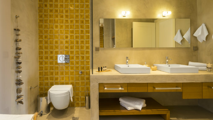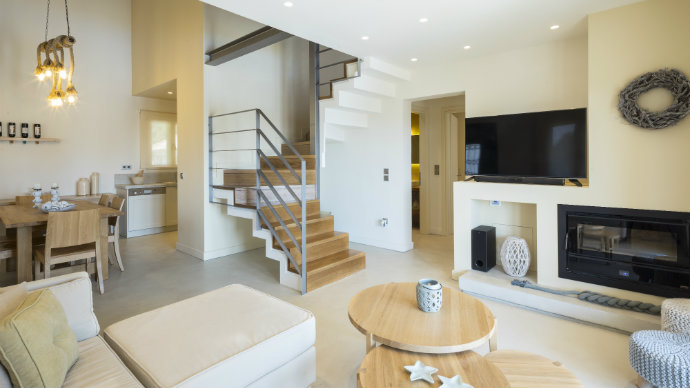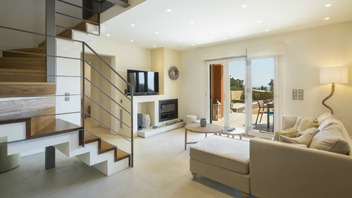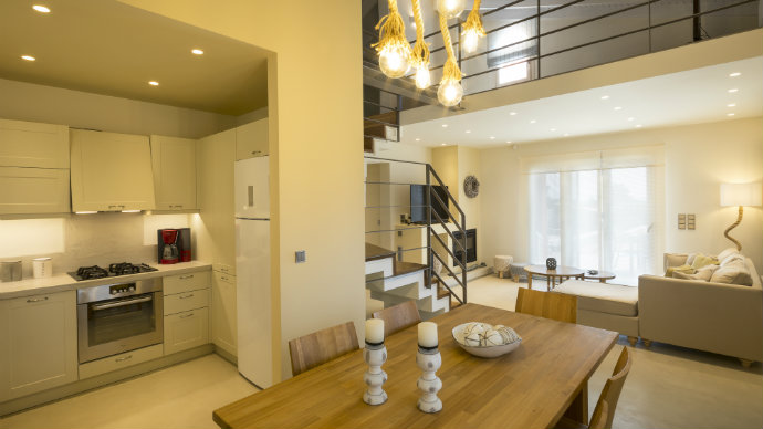 The main Villa of 134 m² was constructed with environmentally friendly standards and materials. The equipment and decoration of indoor and outdoor spaces are characterized by green luxury and extraordinary comfort.